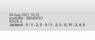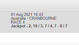 Back on the trots with my Jackpot, just placed early without checking the odds.