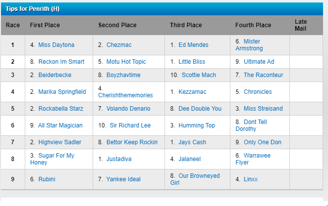 4 years 6 months agoDo the draws really matter here? I would think the horse with better stamina will win. I'm still on Tough Tilly even if Emma Stewart say otherwise. Trainer is likely to win all heats except first one.The favourite will stroll to the front and win without a sweat. Whereas TT will be trapped behind the 1 horse and have to go off the pegs and go around horses to really get competitive. The draw really hurts and TT may not be in the Exacta IMO.Bendigo Race 9 Not sure why Tough Tilly isn't fav? Maybe the bookies know certain info we are not aware of but i reckon this shld be a penalty kick.