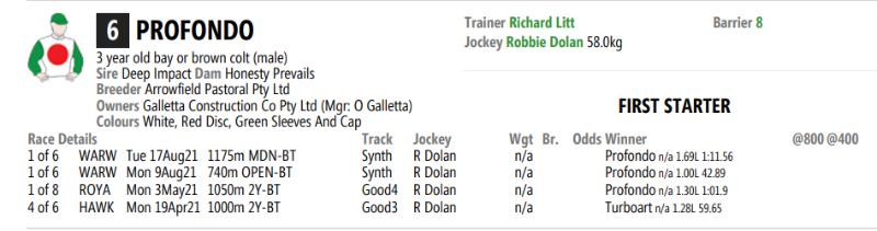 Re: Re:$1.9 Million Deep Impact Colt Profondo debuts 1 Sept 2021 ATC aussie.