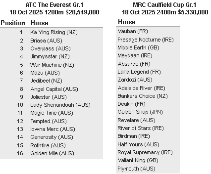 Re: 18 October 2025 big day Everest and Caulfield Cup + 3 other grade 1s