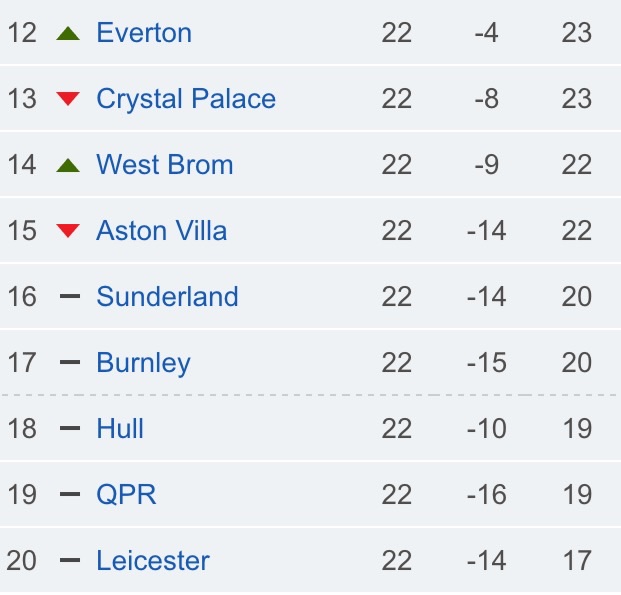 With all these newly appointed managers of the bottom clubs it now is going to be very interesting. Leicester are a good team which needs luck. QPR have been damaged by Redknapp (yet another club) who jumped ship. Burnley playing well also without much luck, Villa with a new manager will get out of it. Hull City now picking up results. Palace will also stay up with the new manager. Sunderland could be one of them going down. WBA will stay up as Pulis is a brilliant manager, Imagine him at a big club.