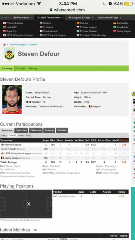 Please change Defour as he is a midfielder and not a defender thanks (my fault)