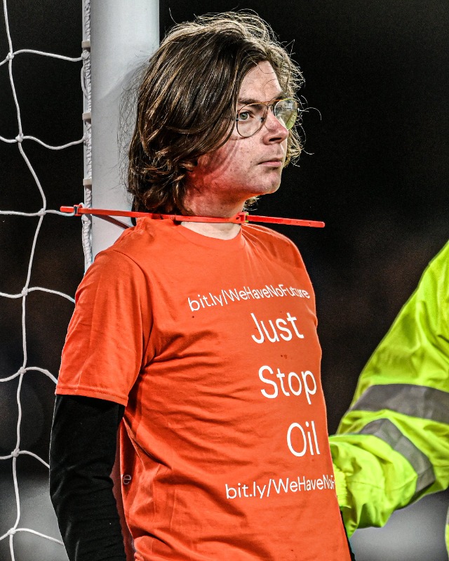 Someone should have told that protester in the Everton game that you don't normally hang yourself from the upright.