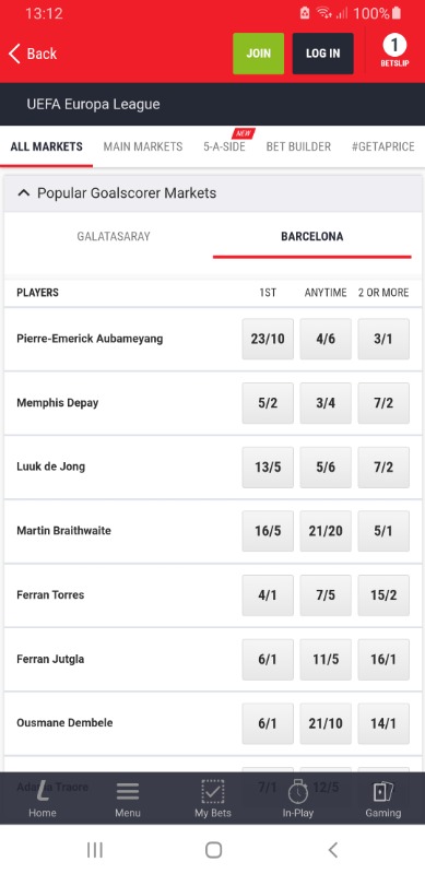 You look through the odds first and see Donny Van De Beek to score anytime is 8-1.