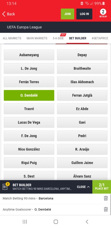 Go to Ladbrokes, the Game for Barcelona today. See what odds you get for Barcelona to win and Dembele to score anytime in the Betbuilder. Looking at it they are taking certain criteria when working out the bet. When a team is odds on, the odds are weak when taking anytime Goalscorer.