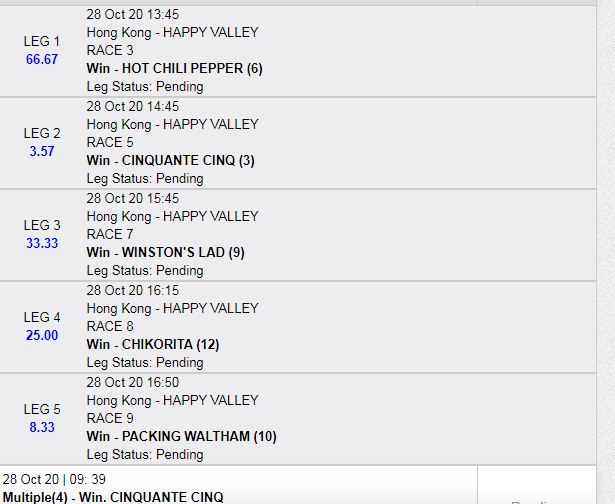 5 years 6 months agoheinrich wrote:eramutsamaya wrote: Jerry Chau has some nice rides, should boot home a few and can win the Jockey Challenge @ 7/1. I'm aggressive today, my gloves are off, HV is always unpredictable.
