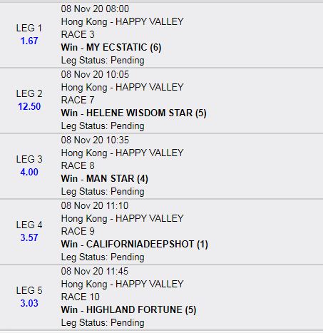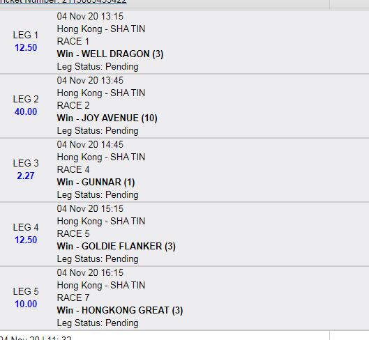 I normally make a short list of 5-6 horses per race...Than check the last 3-5 runs of the horse. His 1st 2 runs was VERY GOOD indeed...and when I looked at it...for me the COMPUTER TEAMS backed him based on those two runs aswell.
