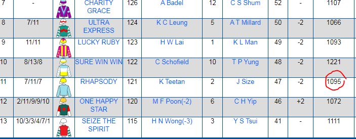 Anyways...The average FIN SPD of a C4 1200M at SHA TIN is 101.02%. Rhapsody's last run race FIN SPD was 99.34% meaning it was run at a fast pace and in context to other races that that (although the Track was running fast) it was pretty decent for C4!