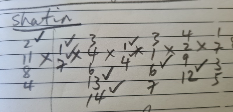 [2, 4, 8, 11]/[1]/[3, 4, 6, 13, 14]/[1]/[1, 3, 6, 7]/[2, 4, 9, 12]/[1, 2, 3, 5]