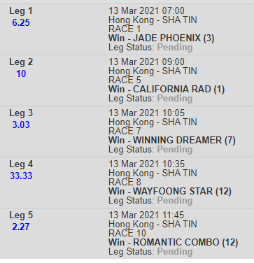 Matthew Poon closed the card last meeting at HV, he gets a chance to open it with Jade Phoenix. This is one of my best bests along with Chadwick's Winning Dreamer on Race 7. On race 8 Wayfoong Star is priced at huge odds but looks to run an improved race with hood fitted for the first time, don't leave this horse in whatever bet you are playing. Magic Man gets a penalty kick in Romantic Combo on Race 10, could be my one of the bankers in exotics.