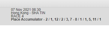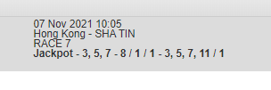 Hong Kong SHA TIN 2 - 4 / 1 - 3 / 1 - 3 / 1 Jackpot
