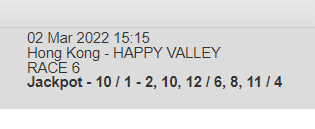 Race 7 12 Happy Jai Jai 12/10/2/1