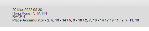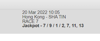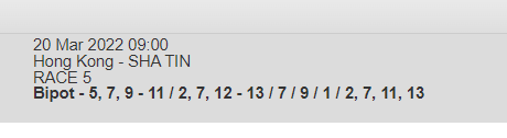 Re: SHA TIN 20 MAR 2022