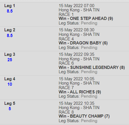 Re: SHA TIN 15 MAY 2022