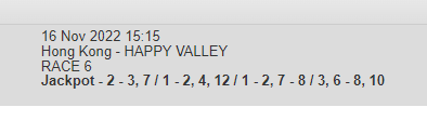 Re: HAPPY VALLEY 16 NOV 2021