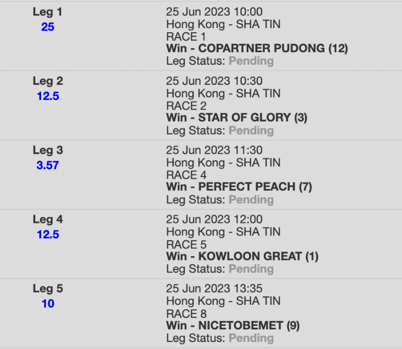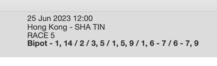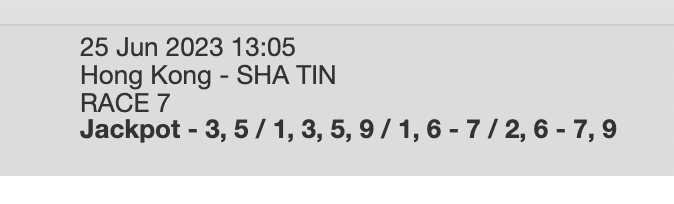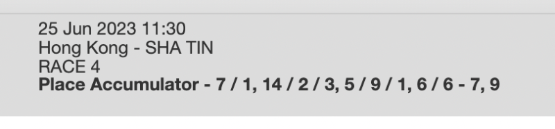 Re: SHA TIN 25 JUNE 2023
