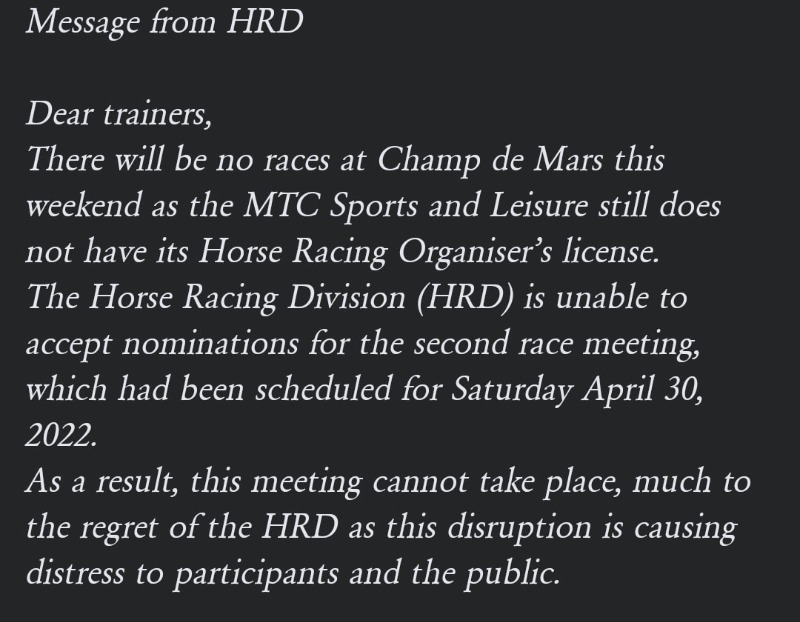 sure many stories but horses racing on the island seems to be far away at this stage.