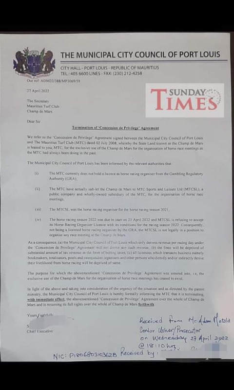 The municipality of Port-Louis takes back the Champ-de-Mars racetrack with the MTC.
