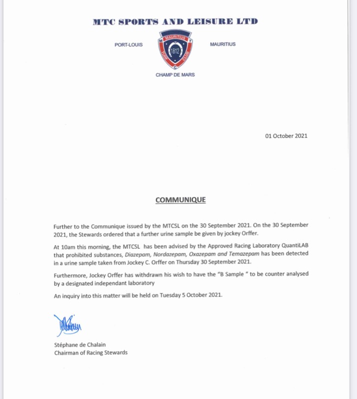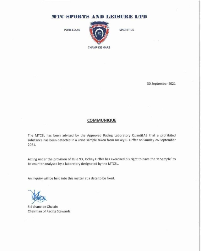 As agreed with his employer, the jockey Bernard Fayd'herbe will return to South Africa. He rode his last day in the Maiden Cup . Moreover, he was not present at training this Tuesday morning.