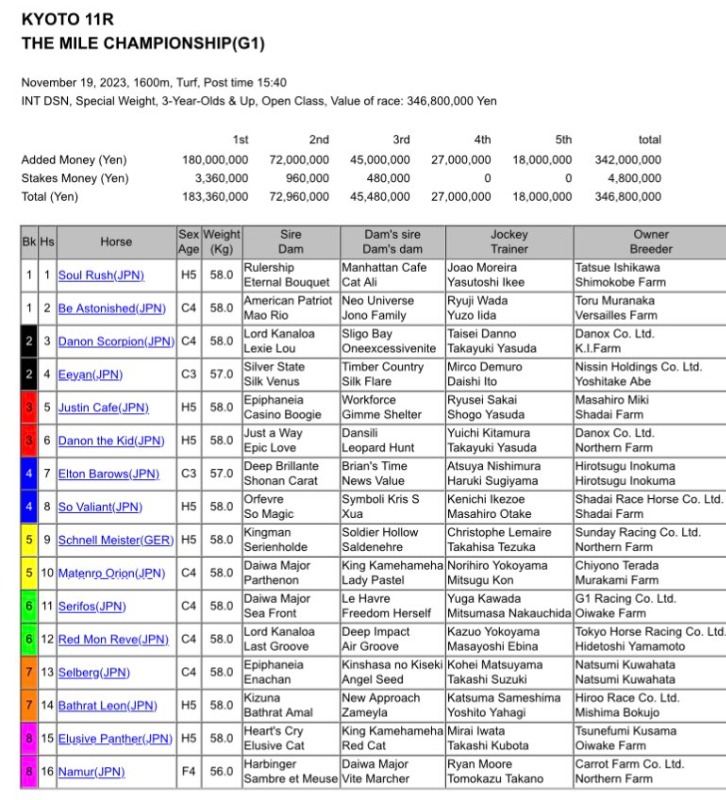 Re: Kyoto Mile Championship Gr.1 19 Nov 2023 1600m