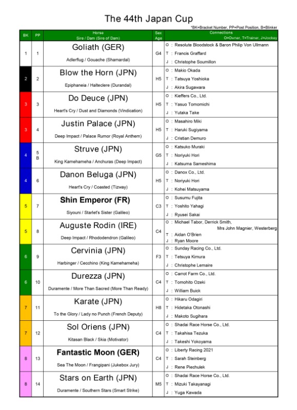 Some data from Japan Cup 1981 to 2024