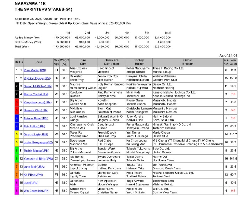 Japan Sprinters stakes Grade 1 Lucky Sweynesse 28 September 2025
