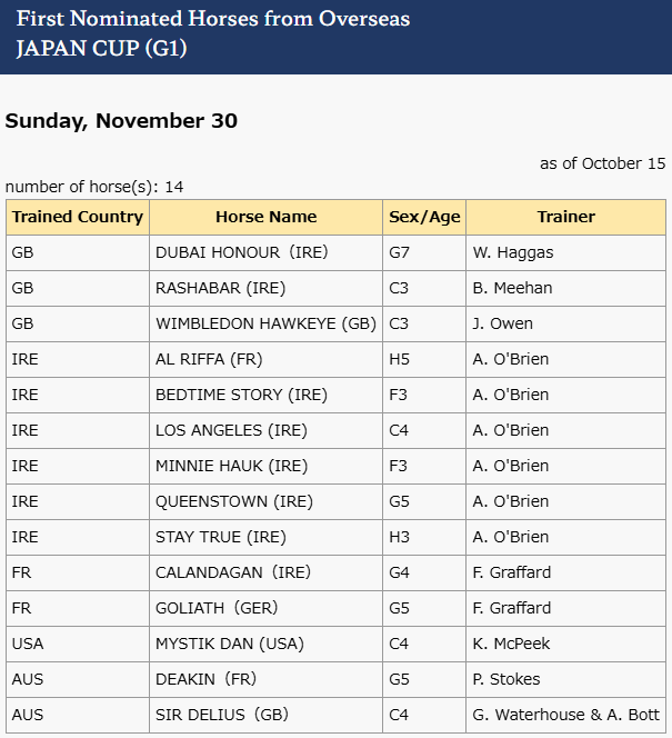 Re: Japan Cup 2025 30 November 1st overseas nominations