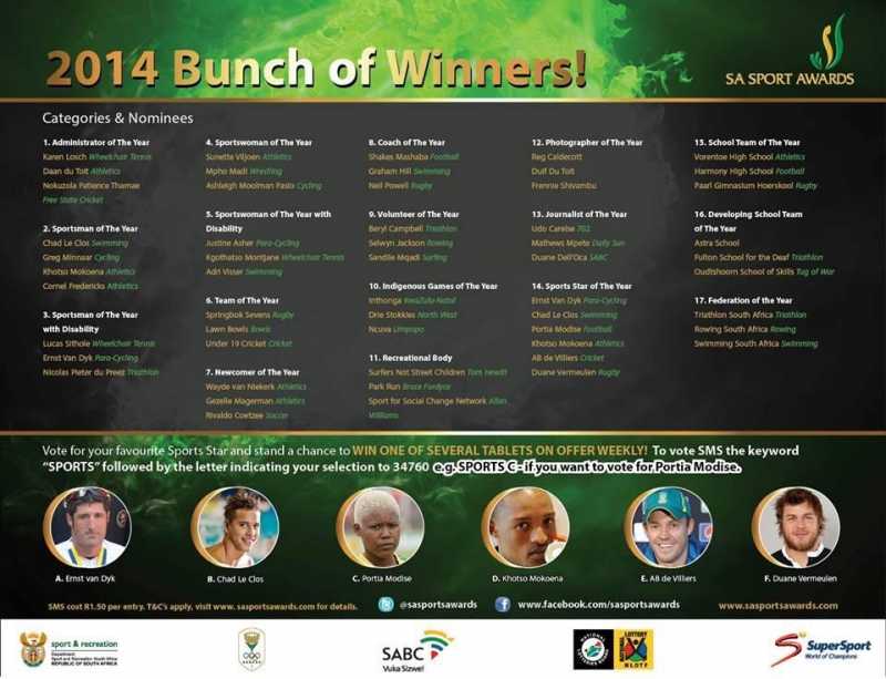 Re: S.AFRICAN SPORTS AWARDS 2014