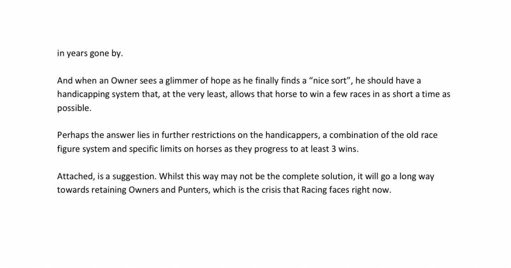 And finding winners in handicaps has nothing to do with allowing middle horses to win more races