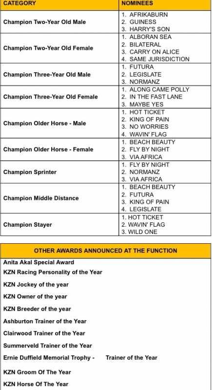 Champions Season had a profound effect on the lists of nominees for the national Equus Awards to be held in Johannesburg next week and by the same token the KwaZulu-Natal Racing Awards.