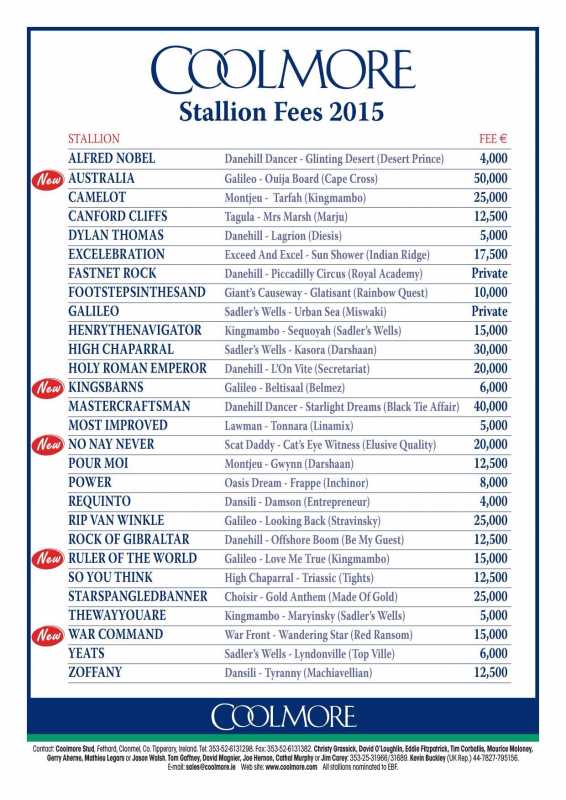 Coolmore the how much who's who