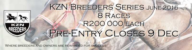 The pre-entry nominations for the KZN Breeders Series of eight races for R200 000 each, have opened. The cost is R57 per horse (incl Vat) and entries close on Tuesday 9th December at 16:00.