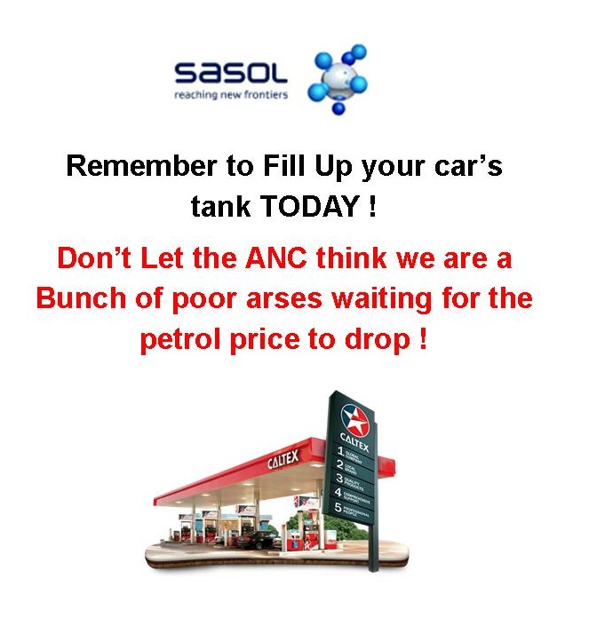 want' s to gain election points for next year it has droped from £1.29 a lit to 1.179 a lit for unleaded ..that makes it R22.00 per lit and what did you say your price per liter is ......????? :dry: