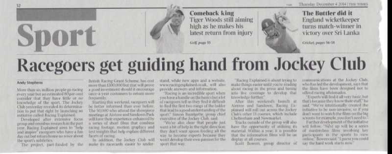 The UK jockey club have announced an initiative ( racing explained ) to help explain racing . They estimate that 80% of the 6m that go racing in the UK yearly have little or no racing knowledge