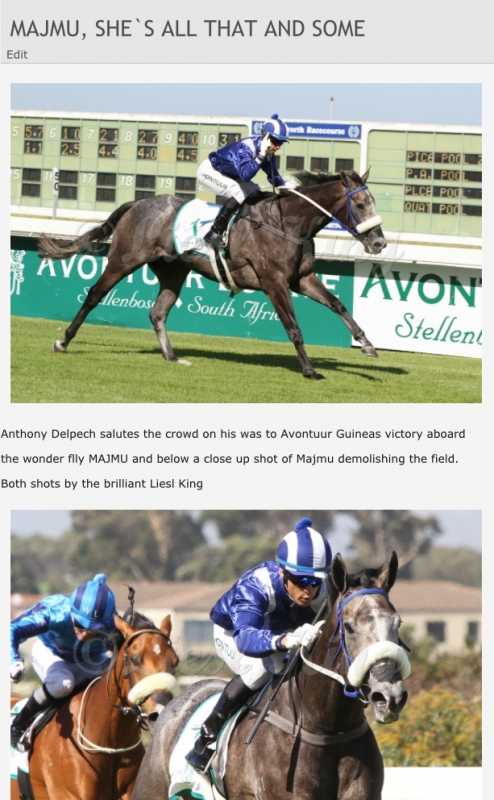 Nice to see her handy which allowed her a clear run(unlike her race in JHB where she was rolled) - I do wish she wins many races and gets up a following amongst punters and non-punters alike. With Act Of War and Legislate around we really do have some super athletes to follow next year which can only be good for Racing.