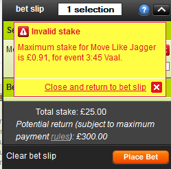 Absolutely right. These days the big bookmakers will hardly ever lay a decent bet in their shops (and are becoming increasingly reluctant to do so online as well). Their staff are instructed to contact their 'traders' (who are really just betting exchange watchers) as soon as anyone tries to place a largish single bet and the traders will frequently either refuse the bet completely or only offer to lay a portion of it. The only way to get a decent amount on (if you have the time and inclination) is to go round to several shops placing smaller amounts which fall beneath their radar. If the UK Government banned FOBTs (Fixed Odds Betting Terminals, often referred to as the crack cocaine of gambling) from betting shops, it might actually force the High Street bookmakers to become bookmakers once more and start laying the sort of bets they used to. If it's any help, you'll get more on in a Paddy Power shop than you ever will with Hills, Coral, Betfred or even Ladbrokes, but, if you win, you won't be able to get it on with them for very long.