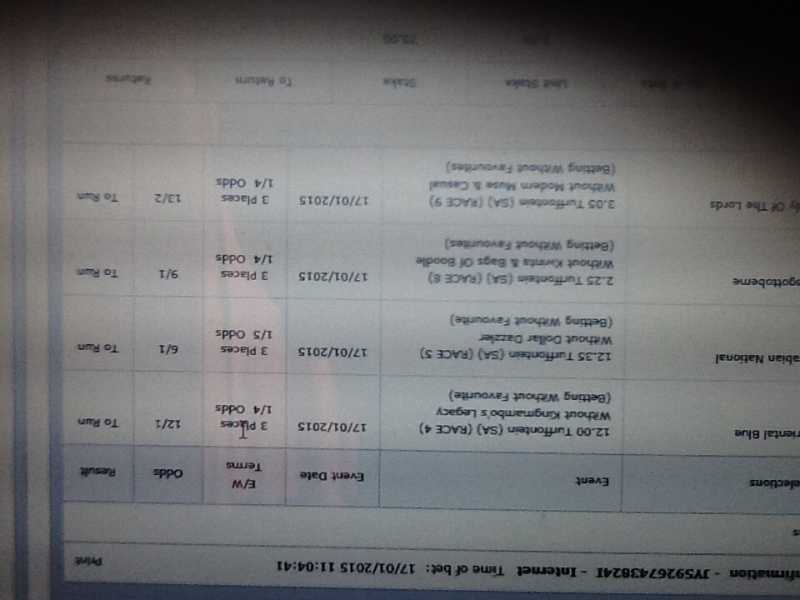 Bayern, I agree overall but don't discount the Peter horse Sir Cecil imo, real nagger for me, not striding on debut when finding a little support in an ok field on debut and there appears to have been some support today, perhaps more e/w than win judging by the price it stopped at. I am with you on SA but SC bothers me lol