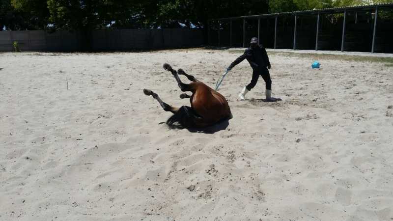 10 years 8 months agoTrip Tease arrived at Kenilworth at about 11h30 today after about 18,5hours in the float from Vaal. He travelled loose and he did drink and eat on the way. Here he is having a roll, after his walk.