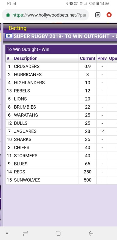 Even Hollywood realise it was a fluke for the Stormers yesterday and still have The Sharks shorter to win the Super 15:P