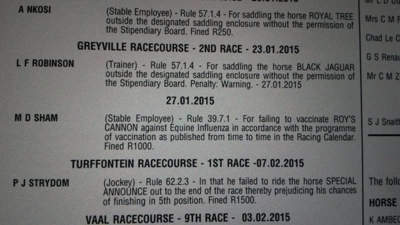 Saddling offences: Frank got a warning for 1st time and Nkosi fined for previous offence???