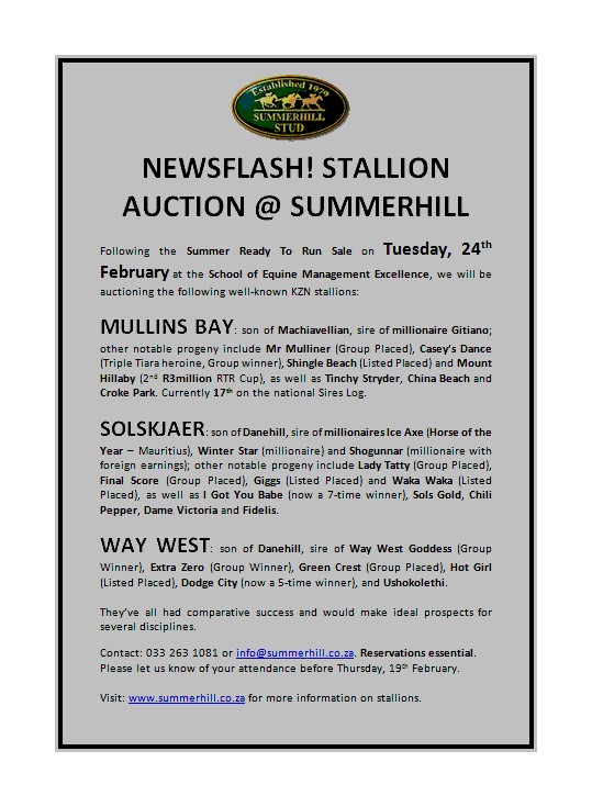Re: Summerhill Stallion auction
