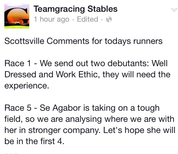 11 years 2 months agoLol. It rolling with there cash budd. Monday was a pay pay day.Merchy wrote:Ha ha ha is that debit or credit bob? Or both?Bob Brogan wrote:Merchy wrote: Curious to know what "budget" the members play with on any given race day, i see 5k being laid on doubles and max bets on singles. Any comments?