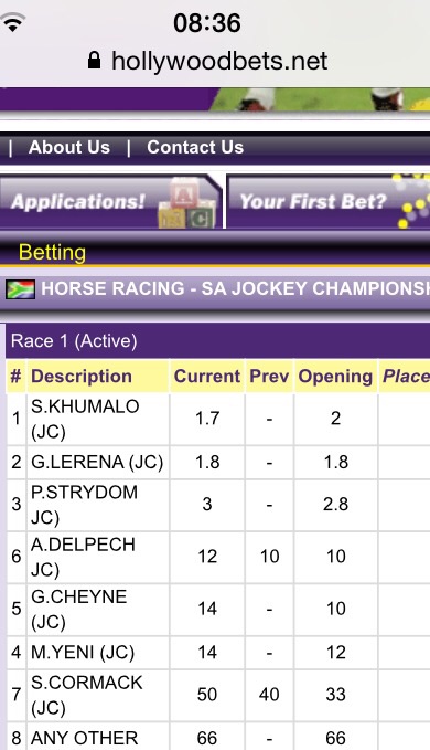 Leading Bookmakers Hollywoodbets have priced up on the South African National Jockey Championship.