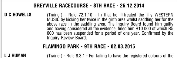Every person including gold circles cheerleader Craig eudey should be calling Duncan howler a arse hole for what he did as they did when muzi threw his whip at the spin doctors horse