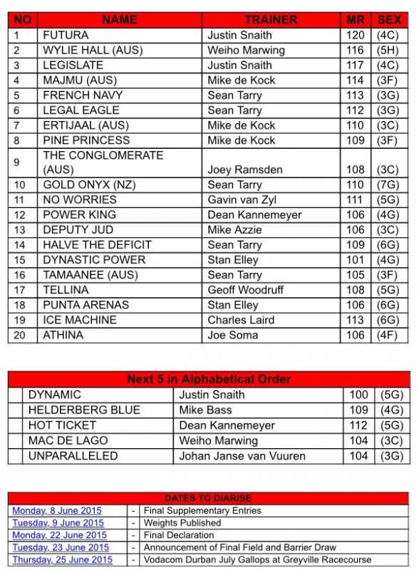 Durban July log 2nd June 2015