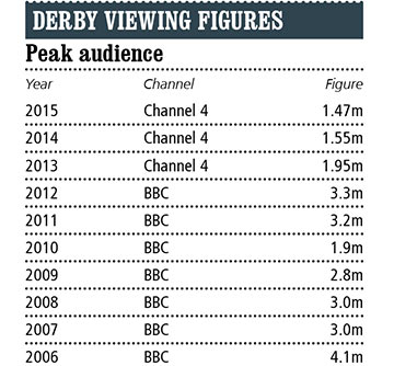 There was slightly better news in the figures for Friday's Oaks, which peaked at 632,000, compared to 558,000 a year earlier, but the Derby ratings are particularly untimely since negotiations with rights holders are only just around the corner with Channel 4's exclusive four-year terrestrial television deal up for renewal at the end of 2016.