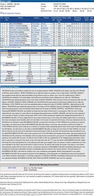 I noticed that there was an Oratorio running today at Happy Valley . So I go check to see how it got on ,and this is the information available ...
