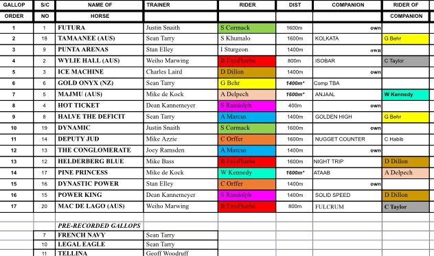 6. Horses will gallop in the following order (where possible due to availability of rider) approx. every 5 minutes - SUBJECT TO CHANGE