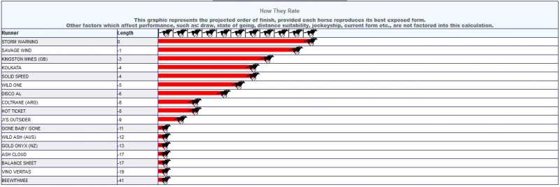 If using a similar analogy like Futura vs Power King (Met and then weight difference in July), it's difficult seeing Wild One finishing ahead of Hot Ticket on last year's result. Similarly, it's difficult seeing Hot Ticket finishing ahead of Disco Al at the weight turn around on their last meeting.