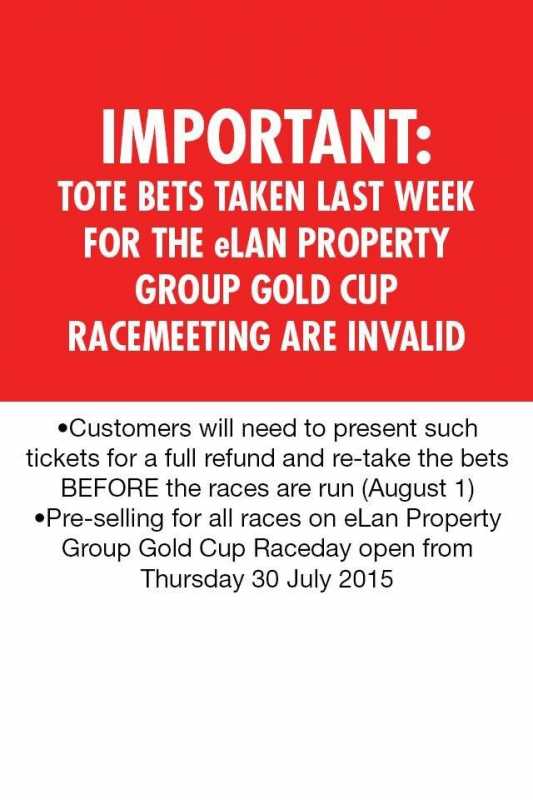 10 years 9 months agopirates wrote:on the gold circle website it states very clearly that bets taken on the tote last week are invalid and customers will have to present these tickets to get a full refund and retake these bets again before the races are run on the 1st of augustTitch wrote: @ Nish:They will still be valid but they cannot stop you from canceling your tickets